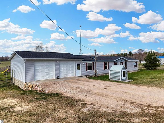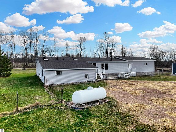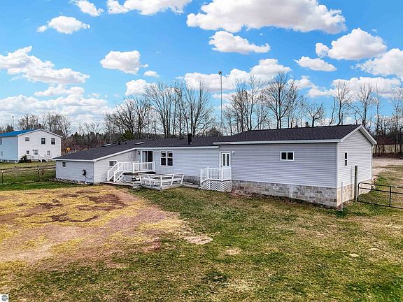 Welcome to your new home sweet home! Charming 4-bed, 2-bath manufactured home with addition for a total of approximately 1929 square feet. Entertaining is a breeze with a generous living and dining room, perfect for hosting family gatherings and catching up with friends. Step outside from your dining room onto the nice-sized deck and soak in the serene countryside views. The large mudroom off the attached garage offers a convenient space to stow coats, shoes, and more. Prepare to be wowed by the second bath (3/4 bath) - that shower is a true standout feature! Park your vehicles with ease in the 2-car attached garage (26x28), and utilize the 24x15 detached outbuilding for your side by side, lawn mower, and tools - it's a DIYer's dream! Situated on 3 acres just half a mile from blacktop roads and a mere 1.5 miles from M-115, you'll enjoy easy access to all the amenities while still relishing in the tranquility of rural living.