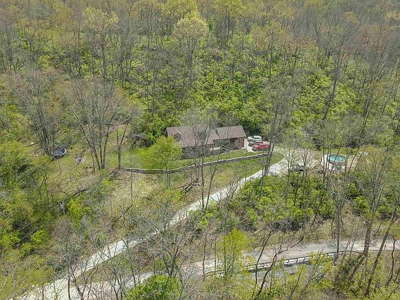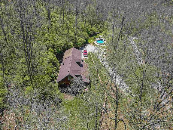 Beautiful Cedar home, expansive deck w/ recessed lighting stretching across the entire front of the home. Nestled on a wooded, secluded 2.62acre lot. Open concept - 3 bed/2 full bath, 1st floor master, 1st floor cathedral study/bonus room with skylights. Updated kitchen with island, stainless steel appliances, backsplash. Wood burning stove in dining room. Second floor - two large bedrooms-both with dormers, full bath. Newer above ground pool with concrete patio (2015), New roof (2020), New $15K retaining wall (2019), New paint throughout. Oversized side entry garage. 2 miles from I-275!