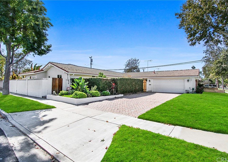 Beautifully remodeled 3 bedroom (with 2 masters), 3 bath home on a large corner lot in highly desirable Rossmoor. Award-winning Los Alamitos School District. This home has a great mediterranean feel with the paved brick driveway, Spanish style roof, and the private front courtyard that is great for entertaining. Enjoy relaxing in the welcoming living room that features plenty of natural sunlight, cozy fireplace, built-in home theater system with speakers, and vaulted ceilings. Gorgeous wood laminate flooring and recessed lighting throughout the home. Remodeled kitchen with stainless steel appliances and new white self-closing cabinets, quartz counters, and travertine floors. Main master bedroom suite features high vaulted ceilings, French doors leading out to the nicely landscaped backyard, a huge walk-in closet, and beautiful bath with travertine floors, dual vanities, jacuzzi tub and a separate walk-in shower. Hallway bath and second master bath have been nicely remodeled too and feature travertine floors and granite counters. Fresh interior paint throughout. Large backyard with 2 separate entertaining areas (a large covered patio and separate uncovered patio area). Updated dual pane windows throughout most of the home and dual AC. Inside laundry room. Attic access for added storage. Close to Lee Elementary, Oak Middle School, Rossmoor Park (featuring tennis courts, basketball, softball, and children's play area), and shopping / dining. Motivated Seller!