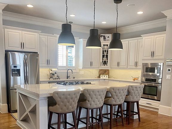 - Kitchen Features: Breakfast Bar, Eat-in Kitchen, Stone Counters, Kitchen Island, Pantry Walk-In, Breakfast Room, Cabinets White