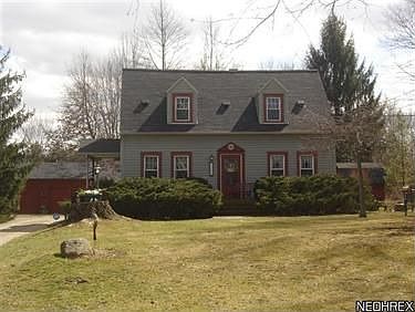 Home Sweet Home! Storybook cape nestled on 2.86 acres. 3 bedroom, 2 1/2 baths pampered by the same owner for over 40 years. Gracious first floor master suite with private master bath is handicapped accessible. Convenient first floor laundry area complete with stackable washed and dryer. You'll love the big charming country kitchen with appliances just recently remodeled in 2008. Charming formal dining room (currently being used as a den). Gorgeous living room boasts hard wood floor and corner hutch. Spacious 2nd and 3rd bedrooms with pristine main bathroom. Awesome 2 car garage offers an attached home office area. Enjoy warm summer evenings relaxing on the patio looking out over the tranquil wooded country setting. This beauty features all newer roof, vinyl windows, vinyl siding, furnace, plumbing, electrical and so much more! City water. Waterproofed basement in 2013. New septic system Spring 2013. Home Warranty! Convenient to highways and NEOCOM. This one's a MUST SEE!