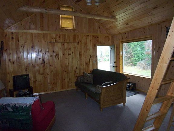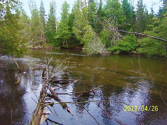 AuSable River ''Holy Water'' with 241' of Frontage and 5.9 acres! Located off of a private road with a sloping terrain to the river - a 672 SF carriage house, recently finished, with knotty pine interior and loft (used as second bedroom). Well & septic installed and ready to build your dream home! Seller will consider land contract terms.