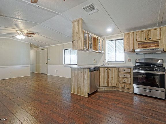 Freshly updated & very well maintained Palm Harbor home on private fenced lot with mature trees and shrubs in desirable Mescal. Split floor plan 2 bedroom/2 bath with dual master layout (originally a 3 bedroom/2 bath, Buyer can convert back). Large carport, covered patio and open deck to enjoy the outdoors, plus room to park an RV. Easy commute to Tucson or Sierra Vista, perfect second home or for primary residence. New flooring throughout, including beautiful laminate wood in the main living areas. New fixtures, countertops, stainless steel appliances and breakfast bar. Shed with workshop, power and overhead lighting. Plus much much more.