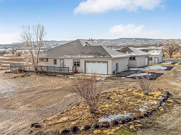 SOLD! IT'S ONLY 10 MINUTES TO DOWNTOWN GRAND JUNCTION!!! Incredible custom property you MUST see in person. The builders/sellers captured the incredible essence of Western Colorado in this ONE OWNER home sitting at the end of a quiet cul de sac. Enjoy the HUGE south facing windows spanning the entire wall looking over almost 9 acres of (possible) equestrian paradise. Inside is a modern kitchen with a one of a kind island with its own zip code, stainless appliances, and extra cabinets for storage overlooking the family room with double mantles and a gas log fireplace. Master suite has a 5 piece bath with an oversized walk in shower, dual walk in closets, and an elevated soaker tub. The property offers endless opportunity with 2 separate attached garages. One is oversized (27'x38') and easily convertible with a full bathroom already in place. There is also a 30'x50' shop with double overhead doors, 2 man doors, an insulated bonus room, and an attached carport running the full length. Geothermal heating and cooling keep the utilities low and the "hidden features" are endless.
