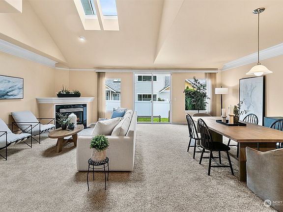 Welcome to this delightful gated community designed exclusively for active adults 55 and over! This beautiful condo features 3 spacious bedrooms, a cozy den and 2.5 baths. The 3rd bedroom can serve as a seond primary bedroom with a private ensuite full bath or it can be a bonus/flex room located right off the rooftop deck. There is an airy great room and huge dining area adorned with vaulted ceilings and a skylight. The large kitchen is perfect for culinary enthusiasts. Enjoy the ease of a 2-car garage and fantastic outdoor spaces. Soak up the sun on your private rooftop deck or enjoy the rear patio. Located just minutes from shopping, medical facilities, and stunning Puget Sound beaches, you'll have everything you need at your fingertips.