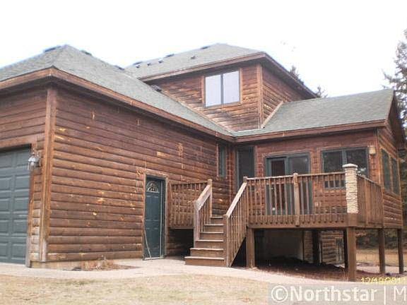Log sided home, upper level beds, bath, & laundry, main floor master suite, sun room, deck, family room, partially finished basement, kitchen/dining/living combo, hdwd floors, den, pole barn w/concrete floor, wooded lot, non-compliant septic.