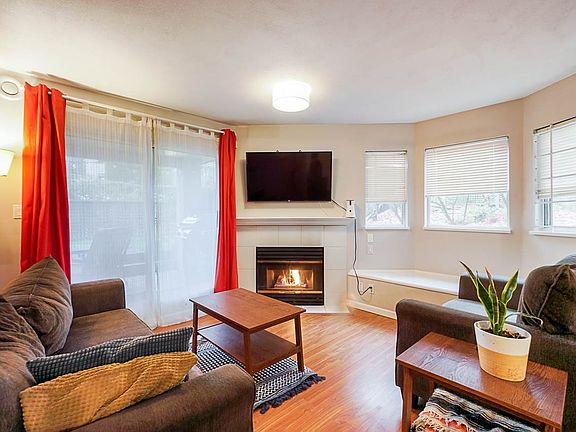 Beautiful ground level condo with large private patio! This bright 776 sqft 1 bed; 1 bath condo features wrap-around windows, a spacious kitchen, and a living room with a cozy fireplace. It also has a walk-in closet in master, insuite laundry and laminated floors. Centrally located, it is close to transit, highway one, Costco, Brentwood Mall, BCIT, and more! One parking, one storage included. Private showings available, call today to book your appointment