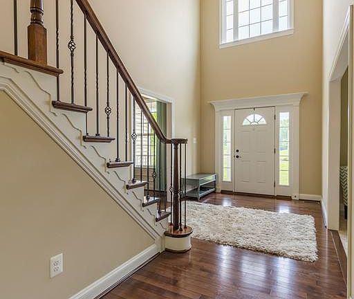 PRICE REDUCTION to this STUNNING 4 bd/4.5 bth 5000+ sq ft home. Boasts a 3 car garage, sun filled 2 story family room, 20x20 ft sunroom, 2 staircases, upgraded kitchen with 2 pantries, hardwood floors & stairs, wrought iron railings, deluxe master bath, water softener & filtration system. On an acre+, relax on your trek deck in private fenced back yard, all in sought after Farms at Hunting Creek!