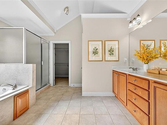Welcome home to this elegant 4-side brick estate boasting timeless design and modern comfort. Featuring 5 spacious bedrooms and 4 full bathrooms, this residence offers exceptional craftsmanship with extensive trim work, gleaming hardwood floors, ceramic tile accents, and plush luxury carpet in the bedrooms and living room. The gourmet kitchen is a chef’s dream, complete with stainless steel appliances, custom cabinetry, and abundant counter space, perfect for both everyday living and entertaining. The open and flowing floor plan enhances the natural light and creates a warm, inviting atmosphere. Enjoy spending time in the living room with a beautiful fireplace and peaceful views into the backyard. Retreat to the oversized primary suite with double trey ceilings, amazing natural light and spa-inspired bathroom with double vanity sinks, separate glass shower, soaking tub, vaulted ceilings, and impressive walk in closet designed for relaxation and privacy. Spacious secondary bedrooms with jack and jill bath and an additional private bath. There is an additional room that could easily be a 6th bedroom, office, or media room! Situated on a level, private yard, this estate offers both curb appeal and a tranquil outdoor setting. Nestled within a beautiful community near top-rated schools, shopping, and restaurants, this home delivers convenience without sacrificing peace and quiet. Come see this one-of-a-kind estate where luxury, comfort, and location meet.