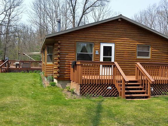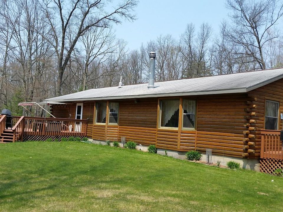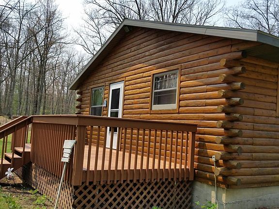 What a beautiful setting for this 3 bedroom one bath home that could easily be changed to add another BR and BA. There is 1350 sq ft with an open floor plan ready for you to redesign if you so choose. The floors are one of a kind, open kitchen and living room, huge master bedroom that could be divided and a large living room that has the space for another wall to be put in to add that extra large bedroom. on top of all this, there is a spectacular deck to enjoy the peaceful serenity that your own private 40 acres provides. Included is also a large 40 x 40 pole barn with a half bath, heat, it's own septic and well to provide a bunkhouse space for those guests or visiting hunters. Come take a look today!