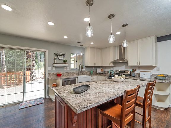 Wonderful Home on Five Acres within Walking Distance to Main St and Historic Downtown Placerville. Huge Country Kitchen, Recently Remodeled. Lg Island w/ Pull Outs, Farm Sink, Pantry Cabinet and Beautiful Granite. Huge Master Ste, with Outside Access to Patio and Ample Double Closets. Newer Laminate Flooring Throughout Most of the Home. Don't Miss the Historic Gold Mine on the Lower Portion of the Property! It sets behind an Additional Storage Building. The Sellers were told it was part of the Original Little Spanish Hill Mine, Formerly owned by the Hook and Ladder Mining Co. Perfect for Wine/Cold Storage. Sit Back on one of the Multiple Outdoor Living Spaces and enjoy the Nostalgic Chimes of the Church Bells that ring daily at 12 and 6 PM. There is also a Separate Artist Studio or Private Office with Additional Parking all set up with A/C & Heat. RV Parking & Comcast High Speed Internet. The Garage currently has a wall that adds a bonus room on the back that could easily be removed