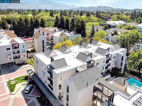 PRICE REDUCED $10,000!!! Walk to BART & Iron Horse Trail! Contemporary 1 bedroom Penthouse with gorgeous high ceiling. Elegant new flooring. Freshly painted. Central Air. Gas Water Heater. Fireplace. Mirrored closet doors. New: Stove, Microwave & Refrigerator! Inside laundry with stack Washer and Dryer included. Relax on your own private balcony! Elevator provides easy access with no steps. Enjoy the refreshing pool and spa. Extras: gym, bike storage room, car wash area, guest parking. Excellent location close to miles & miles of walking/biking trails, restaurants, Starbucks and freeway access. THIS IS A GREAT BUY!!! Click the above link and View the 3D TOUR!