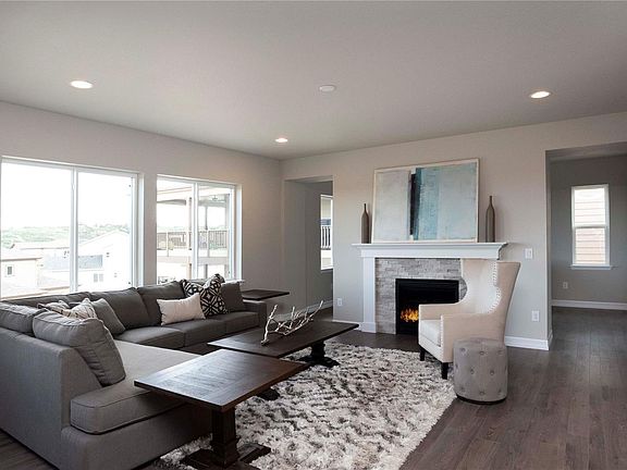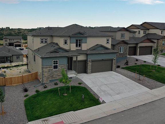 Brand new 2-story in east Terrain! Hardwood floors throughout main level, gourmet kitchen and open concept family room. Formal dining room off kitchen. Gourmet kitchen with granite countertop, stainless steel appliances and gas range! Open concept kitchen nook into large family room with gas fireplace. Upstairs features 4 bedrooms and 3 bathrooms with a huge loft for a TV room or playroom. Master suite features 5-piece bathroom with huge walk-in closet. Additional bedroom has its own bathroom attached. Unfinished basement ready to meet your needs and 3 car garage. Huge lot with front landscaping and sprinkler system. Large back deck to enjoy the valley views in the evenings. Walk-out basement! Enjoy this location with easy access to I-25. Community features pool, tennis courts, walking paths and clubhouse.