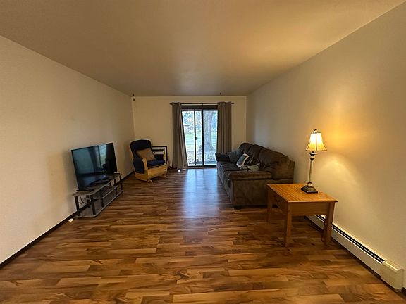 Affordable living at its best! This move-in ready main-floor unit offers a quiet, comfortable setting. Patio doors open to a peaceful yard where you can enjoy frequent wildlife sightings, including deer. A covered carport is just steps from the building for added convenience, and heated hallways provide year-round comfort. The unit features 2 bedrooms and 1.5 baths, along with a private storage closet in the basement. The monthly association fee covers water and sewer, heat, snow removal, lawn care, and parking. Owner is responsible only for electricity.