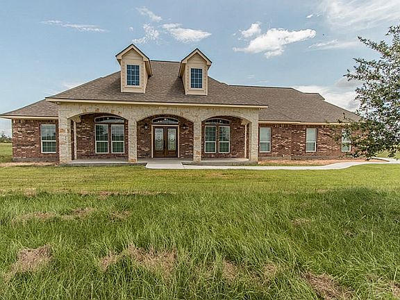 Custom country home on acreage. Cat Spring/Sealy area. Large Pond. Light & Bright 1.5 story 4bed 3.5bath w/large gameroom up. Grand covered front porch & back patio. Open plan featuring chef's kitchen w/large island & granite countertops. Living area w/wood burning fireplace & accent lighting. Master bath features double sinks, walk-in shower & garden tub. Tile in living areas, carpet in bedrooms. Oversized 2-car garage. Low Taxes! APPLIANCES INCLUDED. Minutes to Houston!