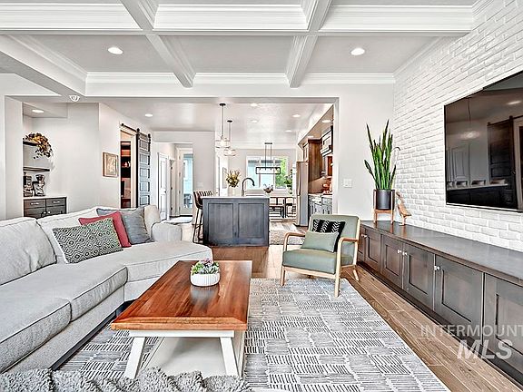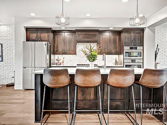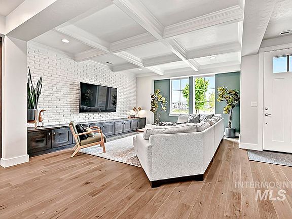 Better-than-new! This ever-popular Row Home in Harris Ranch celebrates privacy, low-maintenance living, and Modern Farmhouse style. Ideally located off of Park Center, the home is within a stone’s throw of Marianne Williams Park & desirable Greenbelt access. Built in 2021, with gorgeous finishes & upgrades, the home is also perfect for convenient lock-and-leave living, providing extra time to enjoy nearby Idaho recreation. The open great room concept includes a stunning white brick accent wall accompanied by functional built-ins. Gather around the graciously-sized island in the gourmet kitchen, with premier appliances, including an upgraded Thermador gas cooktop, elegant marble backsplash & pristine quartz countertops. The impeccable & private backyard features low-maintenance attractive turf, ideal for play space or entertaining. Don't miss the 10 x 10 detached home office with mini-split heat & cooling, located off of the garage. Unbeatable access to recreation on the Greenbelt, foothills, and Boise River!