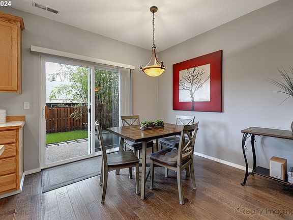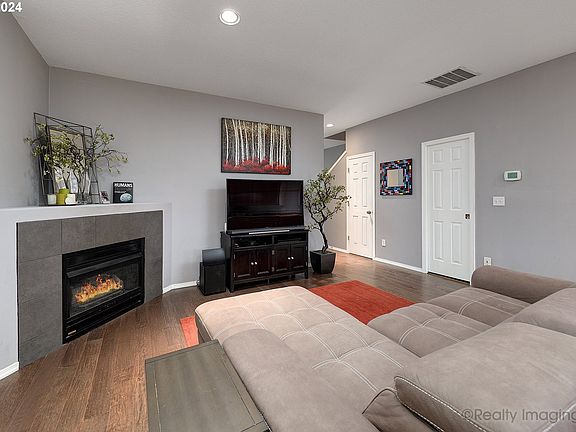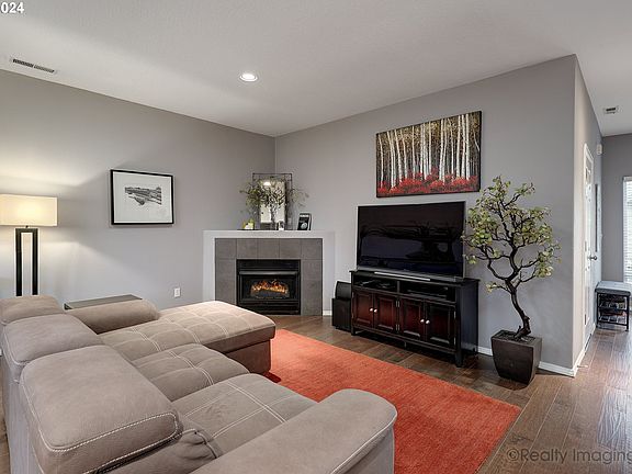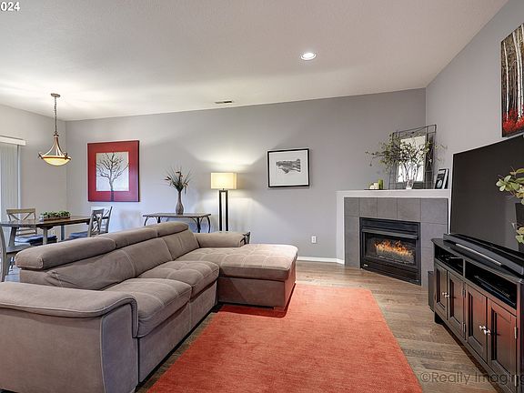 Well maintained and thoughtfully laid out townhome just minutes from downtown Aloha! Upon entering, you'll be greeted by a serene and inviting living space with an open floor plan that seamlessly connects the living room, dining area and kitchen. Between the warm and cozy gas fireplace and the soothing paint tones, you'll be tempted to spend the day cuddled up on the couch with a book. Fully appointed kitchen with island, SS appliances and lovely views looking out to a gorgeous mature oak tree. From the dining area, a slider leads to the private back patio giving you space to relax, entertain and play and it has turf...no grass to mow! The upstairs primary suite is generously sized with vaulted ceilings, a walk-in closet and remodeled bath. Two addtional bedrooms and laundry upstairs. Attached one car garage with lots of storage plus an additional deeded parking space(#14). New roof in 2022. Newer siding, engineered hardwoods throughout, interior paint and a pex repipe. Neighborhood coffeehouse, restaurants and services are a short jaunt down the road! Sellers are relocating abroad and are happy to leave any and all furniture, appliances, TVS, artwork, rugs, pots and pans, dishes and anything in the home if the buyer would like to have it. Perfect for a first timer. Seller needs a 14 day rent back. Home warranty. Affordable HOAS and Washington taxes!