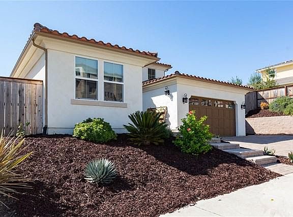 Beautiful Mediterranean style 5 bedroom 3 bath home featuring an open concept living with top of the line finishes including 7.5" engineered hardwood floors, solar panels, tankless hot water heater and central air conditioning. One of only 7 Elm style floorplans in Serra Meadows, which features a main floor master suite and a guest room with access to a full guest bath, laundry room, plus 3 additional bedroom and full bath on the upper level. The well appointed kitchen features GE gas range with double oven, Kenmore Elite fridge, a large center island with breakfast bar seating and overlooks the dining area and spacious great room with fireplace. From the living room a wall of sliding glass doors leads to the patio area, ideal for BBQs and family gatherings. The driveway consisting of hand set pavers leads to the 2 car attached garage offering ample room for storage, plus a dedicated 60A breaker. Ideally located near shopping, restaurants and just a few minutes to downtown San Luis Obispo.