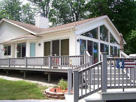 Master Suite, 235 feet on water, steel seawall, permanent dock, gourmet kitchen, granite countertops ceramic tile, six inch concrete driveway, oversized garage, sprinkler system, large yard, great waterfront view. This home has all the bells and whistles.