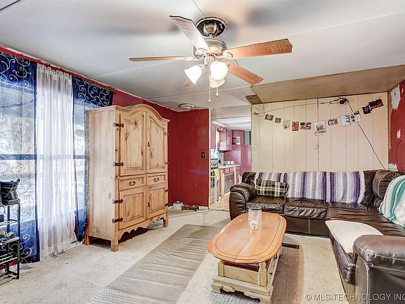 Explore the opportunity to own a 4-bedroom, 2-bathroom manufactured home, conveniently located just a mile from the scenic Lake Ft Gibson. This property has a 2-year-old roof, and covered decks on the front and back of the home, 4 storage sheds for ample outdoor storage and 2 indoor security cameras. Sold as-is, this home offers a straightforward, comfortable lifestyle near natural beauty. Ideal as a starter home for those valuing easy lake access.