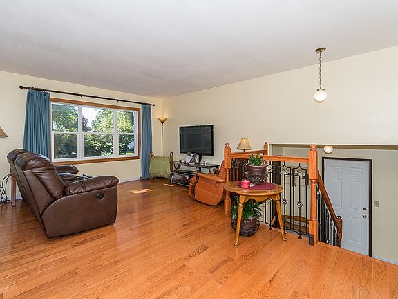 Moving out of state and ready to work with you. This move in ready split-level is located in a family-friendly neighborhood, on a quiet street. The main level has hardwood floors. Great layout with 3 bedrooms and a full bath on the main level. The kitchen features hardwood floors, laminate counters, and a large island complete with breakfast bar. Appliances stay with the home. The master bedroom is located on the main level and features hardwood floors. The partially finished lower level features a full bath (2 rooms), storage area, non-conforming 4th bedroom, and laundry room. Outside you'll find a treated wood deck and patio overlooking the yard with mature trees. Exterior features include a storage shed and 2 raised and fenced garden beds. Two and a half stall garage with extra storage, shelving and workshop area. Call or email today for a private showing (pre-approval lender letter required). Immediate possession available.