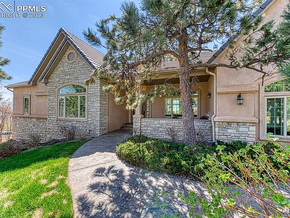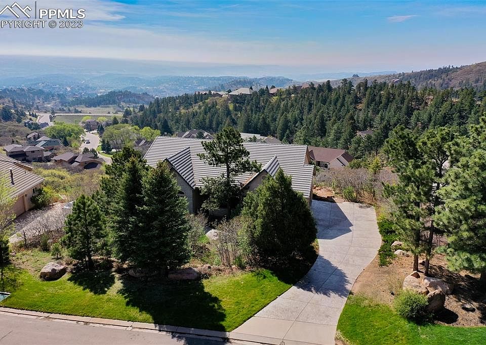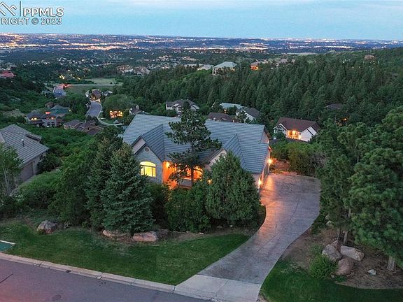 *Pristine setting w/ luxury home located in the desirable Talon Ridge at Peregrine, breath-taking landscape of the mountains, rolling hills and entire city views!**This home will impress from the moment you walk in with open floor plan, abundant windows and true main level living to include a main level office**Enjoy 3 gas fireplaces, built-in surround sound, 46' x 13' deck extending along the back of the home, tile roof**Stamped concrete driveway lined w/ mature pine trees**Walk to national forest with miles of trails. 20'x 9' front door patio area * Walk into bright and open foyer w/ 15' x 13' office or music room on one side and formal dining room with "tray" ceiling on the other* Large family room lined w/ windows & views of the mountains & city,boasting gas fireplace, two sliders, built-in entertainment shelving and TV nook* Gourmet kitchen w/ tile counter-tops, 42” maple cabinets, island w/ gas range, wall oven & built-in microwave, 2 walk-in pantry’s* informal dining nook w/ spectacular VIEWS* Main level master w/ two sided fireplace, spacious attached 5 pc bathroom, large walk-in closet & walk-out to deck & more VIEWS, VIEWS, VIEWS* 30' x 23' Family room w/ surround sound, 9ft + ceilings, wet bar, three bedrooms (all w/ walk-in closets) and walk-out to the lower 19' x 13' deck overlooking the entire city! * Several storage areas in home including under staircase* Over-sized 3 car garage w/ storage and windows *Just minutes away from, Blodgett Peak Open Space,with hiking trails, Marshall Sprague Park, Situated in the foothills of Peregrine, you will enjoy mountain views, mature trees & wildlife yet you are minutes from I-25 w/easy access to downtown Co/Spgs or Denver, USAFA, shopping and dining. *Must See*