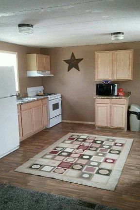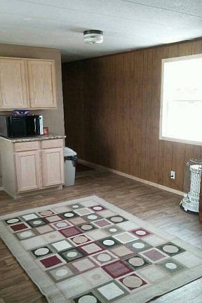 Really nice rolling lot with some trees and fencing. Fairly private. Mobile home has had an extensive facelift including new subfloors and flooring, fixtures, windows and doors, drywall, cabinets, trim, insulation, hot water heater, plumbing and lots more. A full list of repairs is available from the listing realtor. Rent out the trailer to pay for the land or live very inexpensively. Taxes are Homesteaded. Old well is present under floor of one storage building. 2 buildings are there. Carport. Looks a little rough from the outside but very nicely done inside.