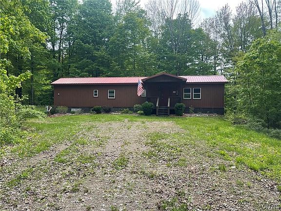 ATTENTION FISHERMEN , HUNTERS OR WINTERSPORT ENTHUSIASTS!!! THIS PROPERTY WITH ITS SCENIC SETTING WITH A POND AND A DETACHED GARAGE, ALL ON 4 ACRES OF LAND COULD BE YOUR YOUR FUTURE HOME OR RECREATIONAL RETREAT. THIS STARTED OUT AS A MOBILE HOME THEN A GENEROUS ADDITION WAS ADDED ( NOT INCLUDED IN SQ,FT. SHOWN) PROPERTY HAS BEEN GUTTED TO THE STUDS AND IS A BLANK CANVAS READY FOR YOU TO PUT YOUR OWN IDEAS IN PLACE TO FINISH THIS HOME THE WAY YOU LIKE IT. THE DETACHED GARAGE OFFERS PLENTY OF STORAGE AND YOU HAVE AMAZING NATURE VIEWS FROM YOUR PRIVATE BACK SUN DECK. GREAT OPPORTUNITY TO OWN A PEACEFUL NATURE RETREAT CLOSE TO ORWELL FISHING AND THE REDFIELD RESERVOIR AS WELL AS ONLY A QUICK DRIVE AWAY TO PULASKI TO THE SALMON RIVER. THERE ARE TWO WOODSTOVES, ONE IS CONNECTED. THERE IS A UTILITY SHED FOR ADDITIONAL STORAGE. PRIVACY BUT WITH QUICK ACCESS TO AMENITIES!