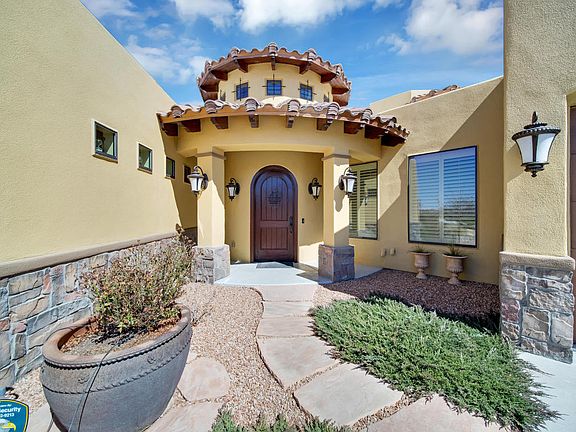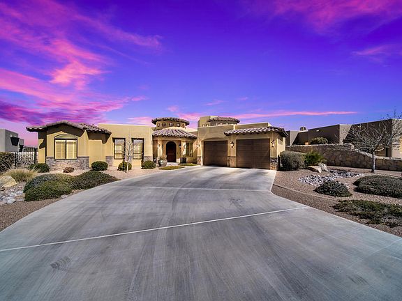 You are going to love this one of a kind, custom home in the heart of Sonoma Ranch! This luxury home seriously has the WOW factor as soon as you walk in! Stone accent on exterior with tiled roof areas & beautiful accents throughout. Upon entering, there is a circular entry way with stone accents & lighted nichos. One will be drawn to the massive living/kitchen area with high ceiling & seamless glass windows that look out towards the northeast mountains! The kitchen is an entertainers dream with custom cabinetry, crown molding, stainless gas burning cooktop. The formal dining room off the kitchen has built in buffet for all those big dinners. The utility room leads into an oversized garage with workshop area & built in storage room. The home boasts a split floorplan with primary bedroom on its own side & large ensuite bath, multiple walk in closets with overhead storage. A retreat in its own upstairs living area with wet bar & views galore from the balcony. Don't miss out on seeing this beautiful property!