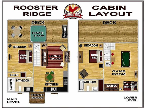 Sleeps 6 to 8 and Grossed $34,747 in 2019! This charming and rustic cabin is located in the gated community of Shagbark. Only 15 to 20 minutes to Pigeon Forge or Wears Valley/Townsend and fairly easy to get to with only a short drive into the mountain and is perched perfectly in a private woodsy setting with a level driveway and parking for 3-4 cars. . The cabin features an open kitchen/ living area with a stone fireplace, a king bedroom suite with Jacuzzi tub all on the main level. The lower level features another king suite, adjoining bathroom, and a game room perfectly set up for kids of all ages with a seating area, pool table, flat screen tv, gaming system and bunk beds. The 2-story back deck offers plenty of space to enjoy the outdoors and is complete with an outdoor dining area, hot tub for 6, and a bbq area. Shagbark offers a large swimming pool and tennis and basketball courts. Doing consistently well on established rental program and recently able to obtain fantastic *high speed internet!