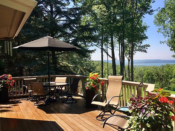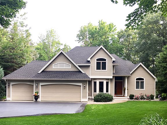 Perfectly situated private wooded lot with year round East Bay views. Five bedrooms, 3 1/2 bath. Appx. 3375 sq ft. This home features an open floor plan which is great for entertaining. Updates to the home include a newly remodeled master bath, updated kitchen and appliances, gas fireplace, recently stained deck patio and siding as well as a new roof, furnace and hot water heater. Lots of walking and biking trails nearby which connect to the VASA and TART Trail, and Mt. Holiday Ski Hill. Enjoy the beautiful sunsets and downtown Fireworks from the comfort of the spacious back deck. A convenient 6.8 miles to downtown Traverse City. This is a must see home! Call Chris 231 218-5465