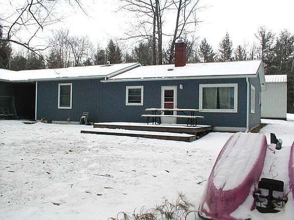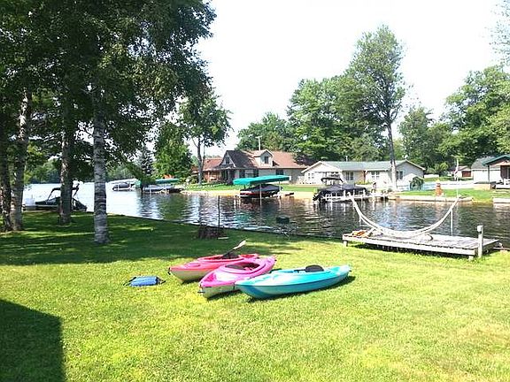 Diamond in the rough. Two bedroom, bath and a half, 2 1/2 car garage and pole barn on two waterfront lots just off main lake. Just down the road from the Eagles Club and steps away from main lake. Needs a little TLC but bones are good. Affordable waterfront with plenty of room to spread out and for many toys. Come join the fun.
