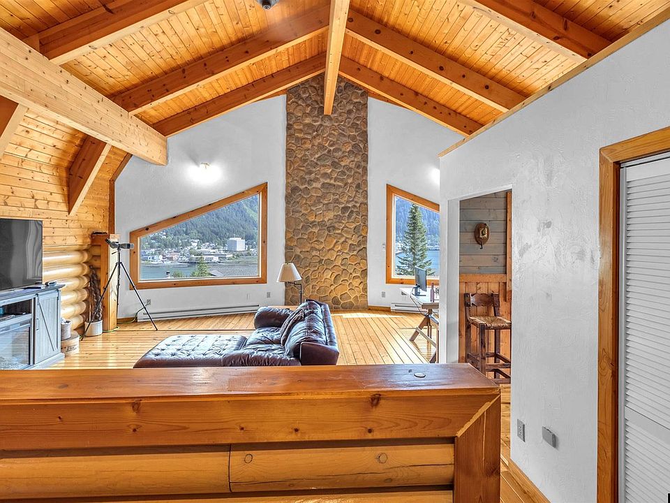 Impressive and Impeccable! This superbly updated home on a highly coveted street in Douglas offers a modern farmhouse feel and versatile floorplan. It has two living areas, both with large great rooms and incredible views of the Gastineau Channel. The top level features soaring tongue-in-groove cathedral ceilings; a gorgeous, remodeled bathroom with a beach house vibe; a large primary bedroom with custom closet; and a functional kitchenette. The main level has a beautifully upgraded kitchen with butcher block counters, a new gas stovetop, and pantry; spacious great room with a pellet stove; updated bathroom with teak counters; and access to a large custom deck. The extensive list of upgrades and improvements will be given to prospective buyers. Be sure to schedule your tour of this unique home soon.