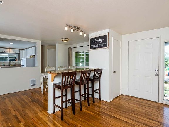 Updated home in desirable South Eugene neighborhood. 2012 remodel opened the floor plan. Hardwood floors thru out. Ductless Heat Pump. Granite. Fenced backyard. Newer Roof and Gutters.