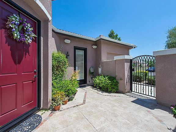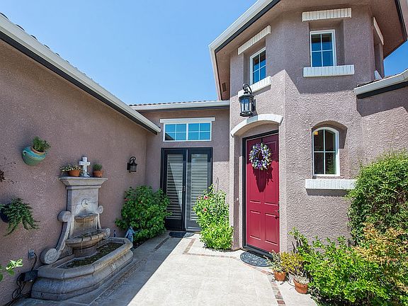 This lovely home has been meticulously maintained and has many custom upgrades through out. As you walk through the courtyard entry one of the many water features greets you. As you enter the spacious foyer you begin to notice the hand troweled walls and special artistic paintwork on ceiling and alcoves, designer paint colors, beautiful lighting and fans, custom drapery, plantation shutters and the large family room The open kitchen with beautiful granite counter tops, kitchen kraft cabinetry, gas range, double ovens and decorative backsplash is a entertainers delight. Lots of room for guest or family to set up to the breakfast bar and taste the treats coming from this kitchen. The master bedroom is spacious with his and her walk in closets and the master bath has separate consoles and a dressing table. A very private guest bedroom is located at the front of the home with its own bath and outdoor entry. The other two guest bedrooms share a jack and jill bath and are privately located on the opposite side of the home. AC’s are zoned to be energy efficient. The backyard features a salt water, pebble tech pool and heated spa, custom Alumawood pergola on elevated patio, outdoor kitchen w/refrigerator, sink and burner. Professional landscaping front and back with in ground decorative outdoor lighting and a secret garden landscaped by Willow Gardens. This home is a must see!