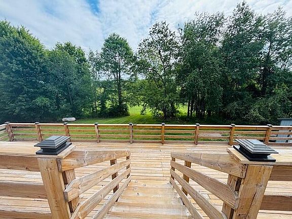 This maintained ranch offers the perfect blend of comfort and country living. Nestled on 3.5 acres, the home features an open-concept kitchen with all stainless-steel appliances included, flowing into a bright dining area with a door leading to a brand-new oversized deck—ideal for entertaining or enjoying peaceful evenings outdoors. The main level offers a spacious living room, 2 full baths, and three bedrooms all with ceiling fans. The primary suite includes a walk-in closet and a fully updated bathroom featuring a walk-in shower and double vanities. Main floor laundry with washer and dryer included adds extra convenience. The walk-out lower level offers a fourth bedroom, a bar area, half bath, and easy could easily been fully finished. Attached 2-car garage, and detached garage with electric, perfect for storage, hobbies, or additional parking. Immediate possession.