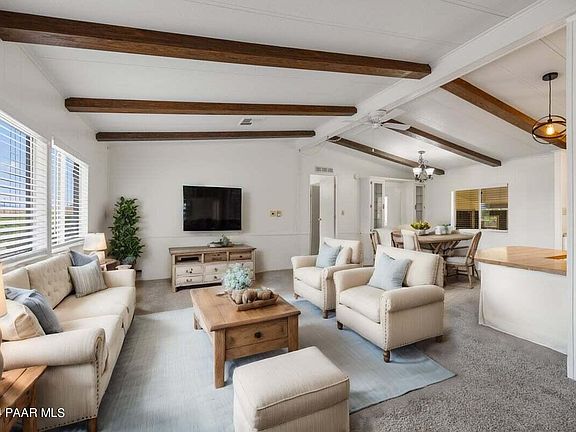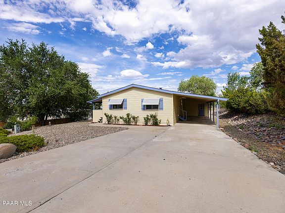 This charming property has been completely renovated--fresh paint in & out, new carpet, luxury vinyl flooring, landscaping and appliances. New roof in 2022. New water heater 2020. It's beautiful and ready for move in. 3rd bedroom has a built-in bookcase & shelves + a perfect spot for a built-in closet. 40' carport easily accommodates 3 vehicles in tandem. Perfect as a primary or 2nd home, it's also perfect as an AirBnb or a desirable rental property (Embry Riddle less than 2 miles away)! You won't find many homes this nice under $350K with a Prescott address! Close to everything (Fry's Grocery, banks, restaurants, Watson and Willow Lake, hiking & boating, and so much more--all within walking distance). Downtown is just 10 minutes away and the Hospital is about 5 minutes. A MUST SEE!