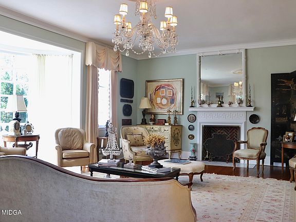 Classic English Regency style home circa 1930 designed by architect Ellamae Ellis League - Beautiful round foyer with Greek inspired details - Large living room with Greek key decorated fireplace and bow window - Charming paneled den with mountain decor - updated keeping kitchen with private court yard fountain and arbor - Covered outdoor veranda/living room with fireplace overlooking salt water pool/hot tub and fountain - Wine cellar in basement - 4 car garage - Thermadore gas range.