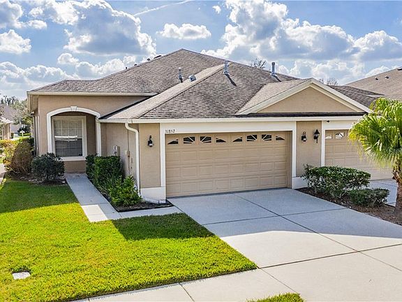 Beautiful Maintenance-Free VILLA located in the GATED community of Larkenheath in Meadow Pointe III boasts 2 Bedrooms, 2 Bath, 2 Car Garage + OFFICE/DEN. Upon entry to this spacious & inviting home, you will appreciate the open-concept floor plan, providing plenty of room for entertaining! The Spacious kitchen features 42 in Oak Cabinets, NATURAL GAS Cooking a chef's delight, GRANITE counters, all matching appliances, a pantry and breakfast bar! The expansive great room offers plenty of room to entertain your family and friends! Sit Back and Relax your OVERSIZED private screened in lanai complete with BRICK PAVERS! Enjoy the private & spacious Owners Suite appointed with a large walk-in closet, a walk-in shower and dual vanities. Secondary bedroom is situated off the foyer next to the second full bath, complete with a full tub, closet for linens and shower. The office/den is a perfect workspace, or hobby room, and could be converted to a 3rd bedroom. EXTRAS: Ceiling Fans, BRAND NEW CARPET, Elegant PAVER Entry, and so much more! A MUST SEE, this villa is move-in ready for you! Residents can enjoy the beautifully maintained amenitied of Meadow Pointe III: swimming pool, clubhouse, fitness center, sport courts and a playground. The community is conveniently located in Wesley Chapel, Zoned for Highly Desirable Schools, just minutes to Wiregrass Mall, restaurants, shopping, nearby movie theater, premium outlets and easy access to I-75! Schedule your private showing today!
