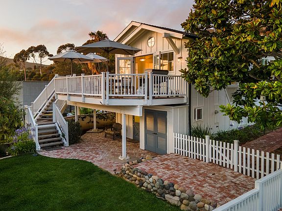 Offering the perfect blend of historic charm and modern style this stunning ocean view beach cottage offers a quintessential Laguna Beach lifestyle! Situated in one of the most desirable locations in South Laguna just seconds from Thousand Steps Beach, Table Rock Beach and West Street on an oversized lot (the home is built on two APNs) with an abundance of outdoor living areas adorned with manicured landscaping, a terraced garden with fruit trees and sparkling views. Originally built in 1929 and recently remodeled with modern finishes including smooth stucco, energy efficient windows, new roof, new landscaping/hardscaping, new doors and skylights - the home is equal parts function & form. The expansive decks offer indoor/outdoor living year round with ocean breezes and views front and center. Whether youre dining al fresco on the deck, relaxing on the shaded patio, playing in the yard, or walking to world famous beaches and restaurants - this home has it all. Natural light pours through windows and skylights in an airy living and dining room enhanced with vaulted, open-beam ceilings and a wood burning fireplace. The chefs style kitchen is complete with marble countertops, stainless steel appliances, furniture style cabinetry, vintage leaded glass accents and French doors with easy access to the upper deck. The versatile floor-plan currently hosts two bedrooms/one bath in the main living space on the upper level, while the lower level hosts an inviting bedroom, two light & bright bathrooms and a separate studio apartment with its own private entry, kitchenette, and private outdoor space. This area is perfect for a guest casita or a separate rental unit. Rounding out the downstairs is a large indoor laundry room and bonus storage area, which is the icing on the cake. You'll never have to search for parking, as there is ample parking with a two car garage and two driveway spaces, so all your guests can join you at the beach. A rare opportunity in the heart of Laguna.