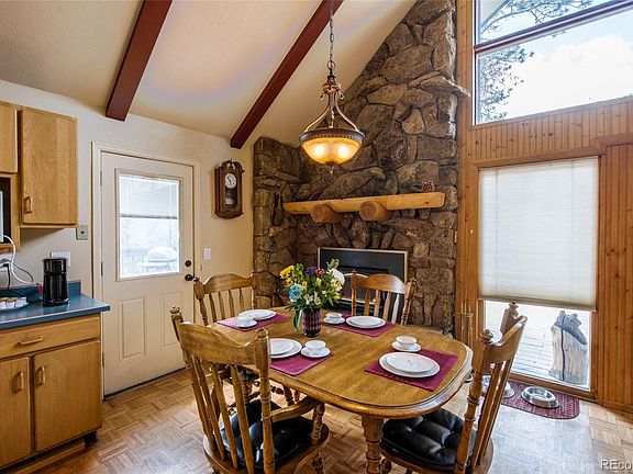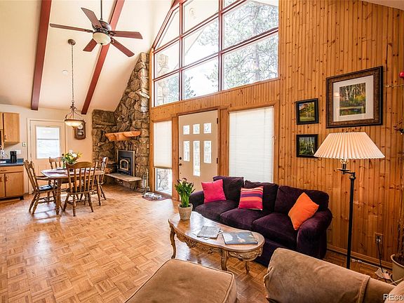 After a great day of hiking at Maxwell Falls, you are just minutes from downtown Evergreen where you can enjoy good food, music and shopping. Your story and a half home is perched at the top of Ponderosa Way in Evergreen Hills. Soak in the privacy provided by the lodge pole pine trees and relax on your wrap around deck with a hot cup of coffee. The vaulted great room flows effortlessly into the dining area and kitchen. Excuse yourself to the main floor master bedroom with a flex space perfect for a sitting area or your home office. Guest will love the second story bedroom or channel the mountains inspiring scenery in your own art niche. The finished basement includes 2 bedrooms that may be non conforming based on the size of the windows, a comfortable recreation area with stone wall and convenient 3/4 bathroom. A large 11 x 22 shed can easily be converted into a single bay garage. The flat .627 acre lot has ample room to expand the home or add a full garage.