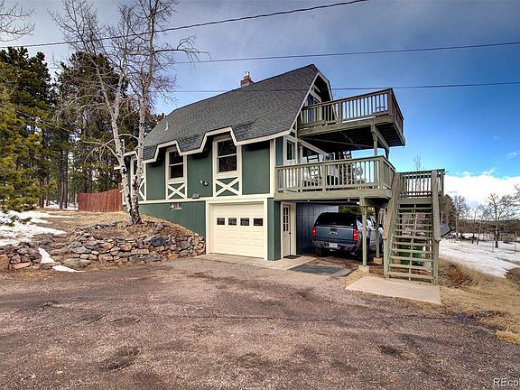 ANOTHER PRICE IMPROVEMENT! Welcome to this pristine foothills’ property! Situated on 2.15 flat and usable acres, this beautiful 3-bedroom, 2-bathroom Chalet has been well maintained and updated. A majestic mountain retreat that hosts a lovely meadow and year-round spring fed pond, this property is the perfect place for your family to enjoy the fabulous foothills living. Property allows for horses as well. The home & barn exterior have been freshly painted; roof replaced in 2013. Carport & One-Car attached garage with access to lower level & ample parking on driveway as well. Two great decks with mountain & city views are perfect for entertaining or sit and watch the abundant wildlife. Come inside to the updated interior with new windows & trim throughout (2022), open, bright floor plan, gorgeous gas fireplace in living room. Updated, open kitchen has eat-in island, all new quartz counters, new sink & SS appliances. Separate formal dining area. Full bath with tub on main level. Upper-level hosts two bedrooms, one being used as an office has sliding glass door to deck. Upper room closets have crawl space for additional storage. Lower-level hosts primary bedroom & en-suite bath, laundry & walk-in closet. Private fenced area with hot tub, greenhouse & open-air compost bin, just perfect for the plant lover. Large, detached barn/garage has updated interior panels, work bench for projects, more specifically for tuning skis. New whole home gas generator in back exterior of home, has automatic switching system & Smart features to notify you when power goes out. Thermostat, smoke/carbon monoxide detectors all have Smart feature as well. Close proximity to hiking/biking trails: Maxwell Falls, Cub Creek & Flying J Ranch. So many upgrades and amenities, you won't want to miss the opportunity to view this perfect foothills home in Black Mountain Ranch Estates Subdivision in desirable Jefferson County. Contact listing broker for a private showing today.