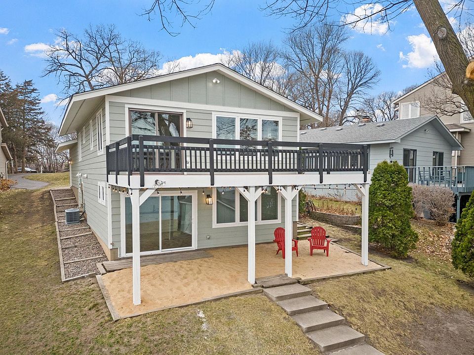 Completely renovated lakeside property with stunning lake views, modern finishes, and ample storage. Features 3 bedrooms, 3 bathrooms, a spacious garage, and 74 ft of lakeshore on Upper Prior Lake. Enjoy the open layout, custom kitchen, wet bar, and easy access to the lake from the lower level family room. New roof, siding, and windows, plus a maintenance-free deck and future patio area. Situated on a quiet circle with mature trees and a storage shed for convenience. Experience lake living at its finest in this turnkey home on Butternut Circle.