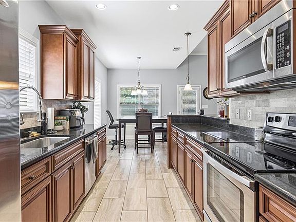 Two-car garageFenced backyardForitified roofPrimary suiteSoaker tubBright dining areaBlack granite countertops