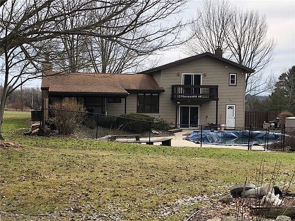 Great property in Bemus Point school district. This home offers new kitchen with solid cherry cabinets , granite counter tops, stainless steel appliances and much more ! Radiant heated floors in downstairs bath room and master bath. Gas fireplace has the option of wood burning as well. Dining room ideal for family get together. Plenty of room with family room, formal living room and a rec room, covered back deck with patio that overlooks in ground pool . 50 x 170 post and beam barn with metal roof, and bathroom. A terrific building for boat storage or converted back to 12 stall horse barn owner currently stores boats that generates income...New owner if chooses can take over rental. Home is low maintenance with 40 yr architectural roof and vinyl sided only a few minutes to town !