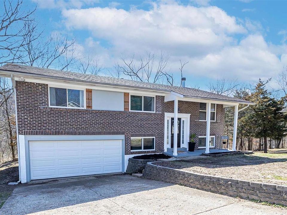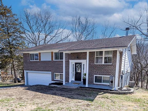 Turn off of HWY M onto Moss Hollow Rd., take a deep breath, enjoy the gorgeous scenery along Moss Hollow, take a right on Upper Moss Hollow Rd., arrived at your own little piece of paradise. This move in ready 4 bed, 3 full bath home sits on aprox .75 acres of land mixed with open flat areas and some hilly wooded areas with rock outcroppings and an area to enjoy evening fires. The main level is freshly painted with a farm house kitchen that is open to the dining and living areas to create that desired open living space. The primary suite is fresh, open and bright with a full updated bath. An additional full bath and 2 good sized bedrooms finish the first floor. The lower level family room has plenty of room to hang out and features a wood burning fireplace, French doors leading to the wooded back yard, an additional bedroom, full bath and laundry area. Oversized 2 car garage allows for extra storage. This home is all electric with a well and septic so utilities are minimal.