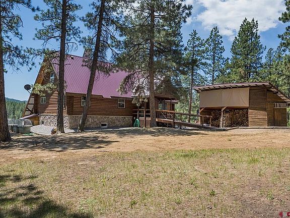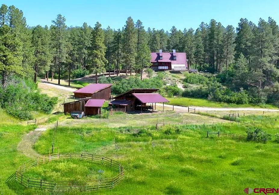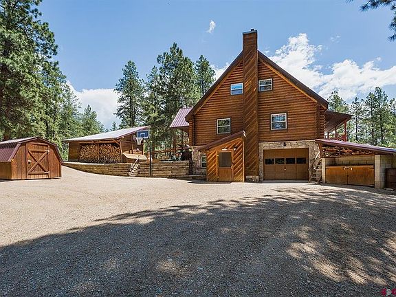 Do you value privacy, self-sufficiency, tall pines and prime pastureland with an abundance of water and wildlife? This custom totally self-sufficient off-grid, 3 level log home is adjacent to the San Juan National Forest, and situated on 20 acres of partially fenced property. The vegetation consists of 15 acres of mature Ponderosa Pine/Gambel Oak forest, and 5 acres of sub-irrigated meadow/pasture lands (brome, timothy, wheatgrass, alfalfa, red clover). This unique property not only has tall pines and meadows, but also offers plentiful water - with Beaver Creek, Citizen’s Irrigation Ditch, 1 spring fed pond, and 1 seasonal pond all located in the meadow/pastures. This property also offers amazing views of the HD mountains, with the home located on a ridge that overlooks the pastures and barns. This off-grid self-sufficient solar powered home has updated state of the art solar photovoltaic panel arrays, AGM battery storage system, charge controllers, inverter/chargers, and a propane backup generator for those cloudy/snowy days. The current owners designed, built, and successfully lived off-grid on this property for 44 years. The solar PV system has historically provided approximately 98% of the power needs for the home, with the remaining from the propane generator. The home has unique appliances designed for off-grid solar living, and includes a 12V solar refrigerator, 12V solar freezer chest, gas range/oven, gas water heater, washer, gas dryer, dishwasher, and microwave. Household water is provided by a good producing well, 1800-gallon cistern water storage, whole house water filtration system, and reverse osmosis 6 stage drinking water purification system. The 3 level, 3100 sq ft home has living room, kitchen, dining room, 3 bedrooms, 2 bathrooms, 3 bonus rooms, large rec room, two covered decks, one car attached garage, workshop, mudroom, and greenhouse attached to the kitchen. The property also contains 1 hay barn with covered feeding area and attached goat barn/chicken coop, 1 horse foaling stall/barn with attached turnout pen, tack room, outdoor riding arena (66’x132’), round pen, 2 bay carport, 4 bay equipment barn, woodshed, storage shed, multiple gardens and raised bed growing areas, and 1 large fenced dog pen with doghouse. This 1979 home has been well maintained, and will welcome your personal updating touches.
