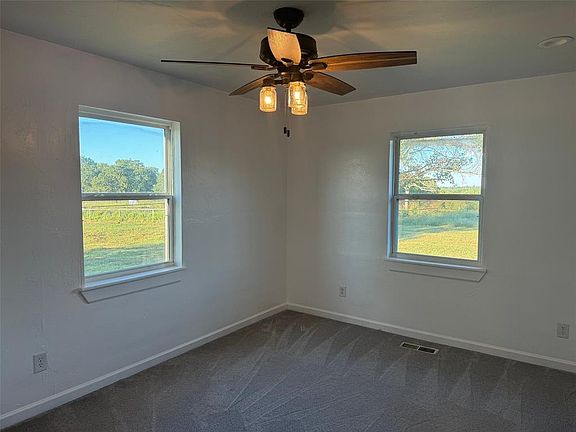 Nestled on a serene 7.33-acre lot in Macomb, Oklahoma, this newly renovated 4-bedroom, 2-bathroom home offers 1,844 SqFt of modern comfort with a touch of rustic charm! Featuring custom maple cabinets, soapstone countertops, new appliances, a high efficiency fireplace installed in 2022, and a below-ground storm shelter – this home is move-in ready! This property comes with a detached 2-car garage, a large barn perfect for livestock or storage, and several smaller outbuildings. Located less than 20 minutes from Tecumseh, Oklahoma, and only 45 minutes from downtown Norman, Oklahoma, you can enjoy the best of country living will still being close to nearby amenities.