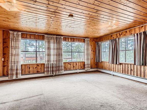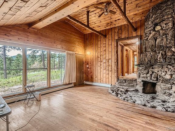 Beautiful views await you on this 2.14 acre property in serene Coal Creek Canyon. The lot features flat topography with gentle sloping towards the North end of the property. This is a perfect lot for you to build your dream home. Ample parking, and a 2 car detached garage. Kitchen does feature newer appliances. Boiler was replaced in Feb.2022, vaulted ceilings in living room, and stone fireplace. Buyer to verify schools, and perform their own inspections & investigations through Boulder County.