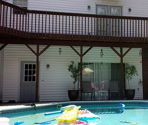 Very large family home. Lots of space and storage. Three fireplaces. Extremely energy efficient. 18 foot ceilings. Wonderful pool and spacious decks. Two porches. Totally surrounded by hardwood forest. Incredible privacy. You will love it. Come see make offer.
